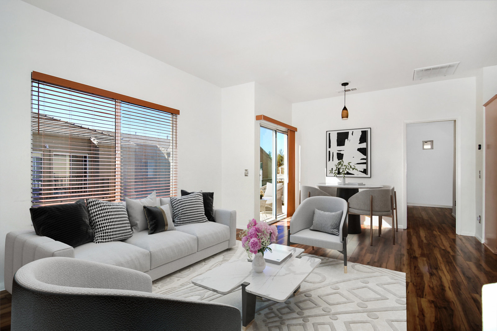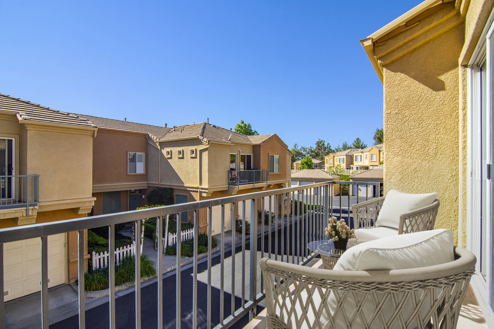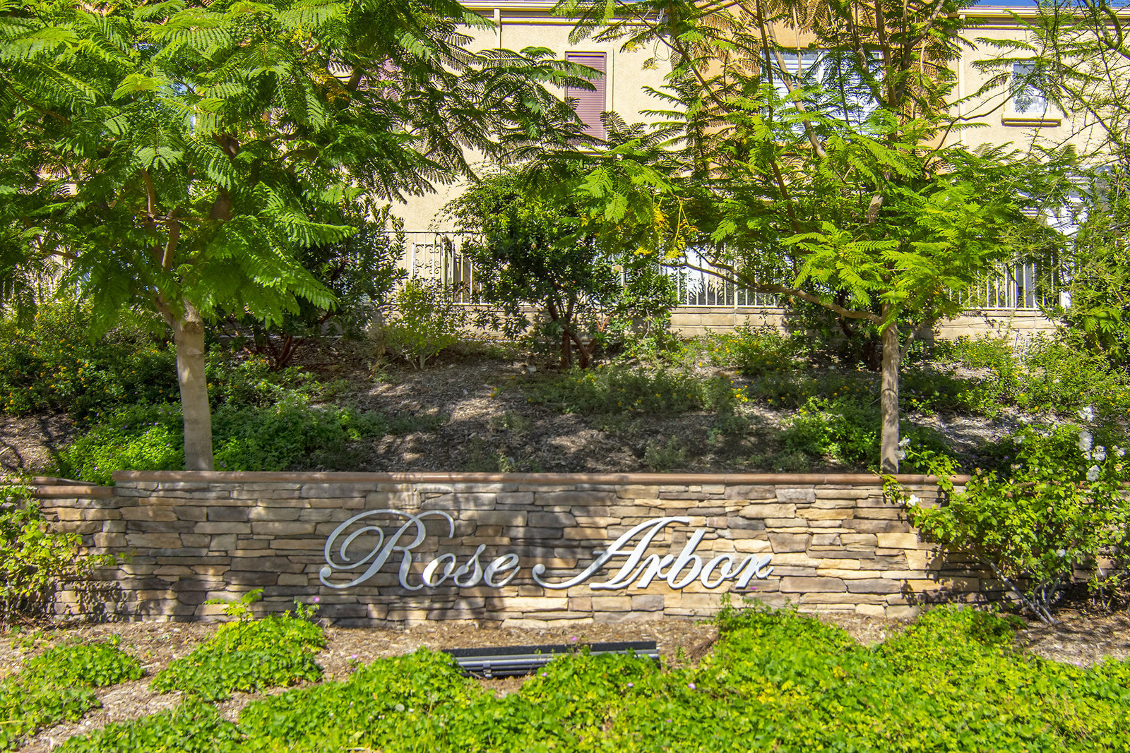 Presenting an ideal end-unit within the sought-after Rose Arbor Condominiums. Come experience piece of mind within this security patrolled community. This prime locale affords the opportunity to savor the surrounding tranquil lush foliage from your large private balcony. Ample windows invite natural light to shine throughout the unit which features a spacious living room with cozy fireplace, smooth ceilings, beautiful flooring and distinct architectural accents. Gorgeous kitchen affords stainless steel appliances, including a refrigerator and plenty of cabinetry. Your primary suite offers access to the balcony, two mirrored wardrobes and a stunning full bath. Desirable direct-access garage comes equipped with a full-size side-by-side washer and dryer. You’re just steps away from a spectacular pool & spa with convenient outdoor shower and restrooms. Take a leisurely stroll, bike ride or go for a run along the adjacent lighted Paseo the area is renowned for. Mere moments to loads of shopping, yummy eateries and easy freeway access. Don’t miss!